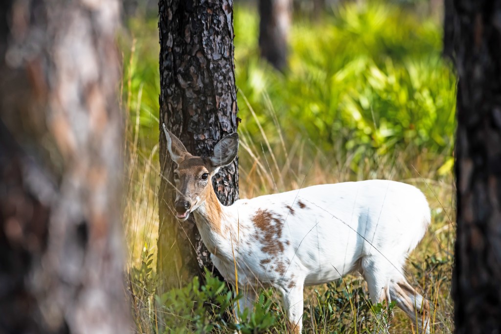 There’s also a gorgeous leucistic deer that lives in the park. We saw her on the wildlife drive, though not on this trip. These photos are from a previous trip to the park. We were told she still lives here though.