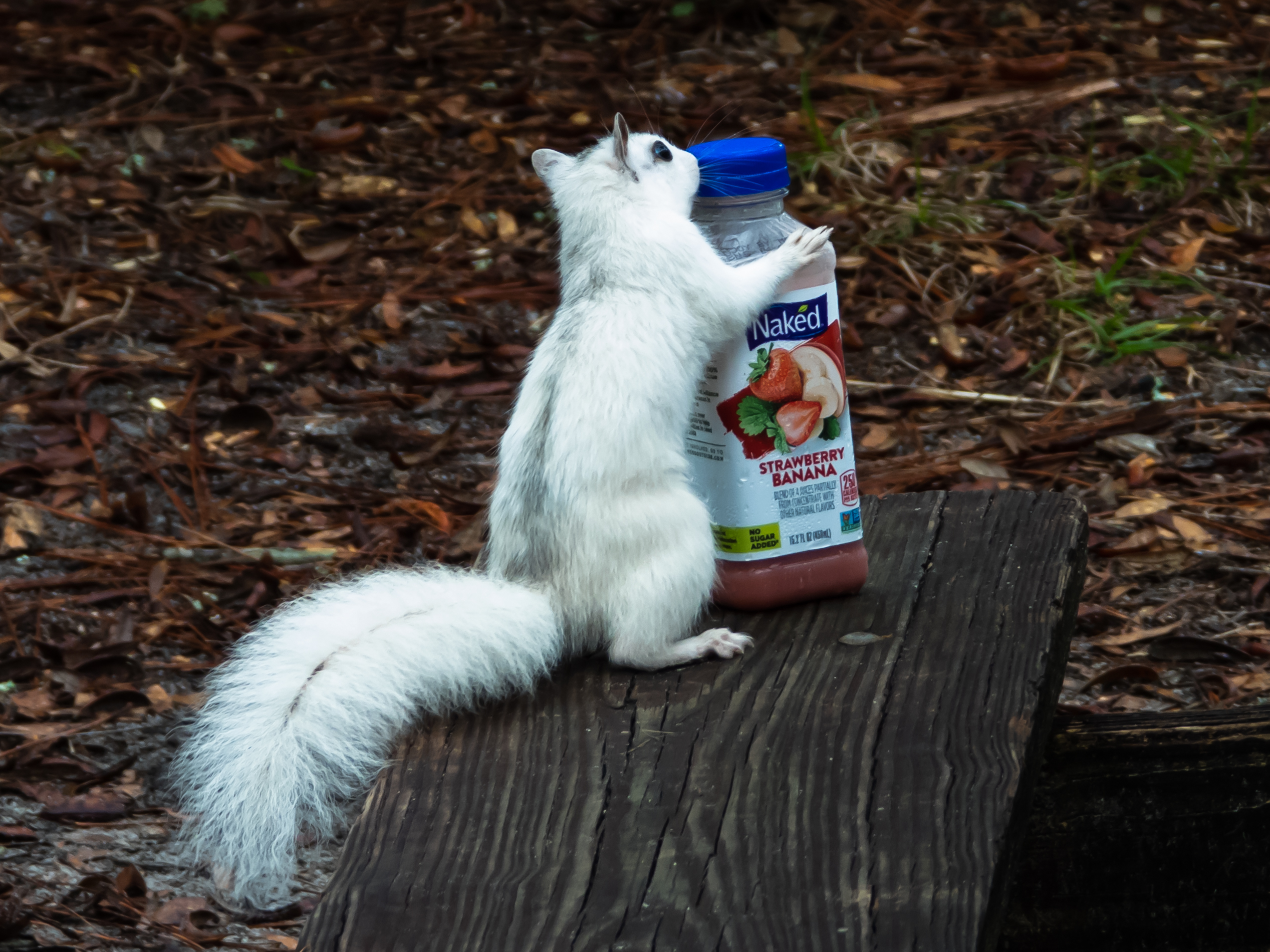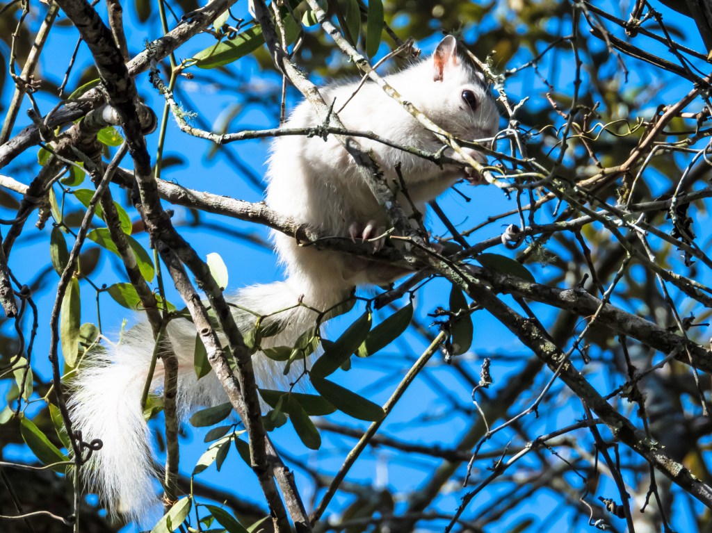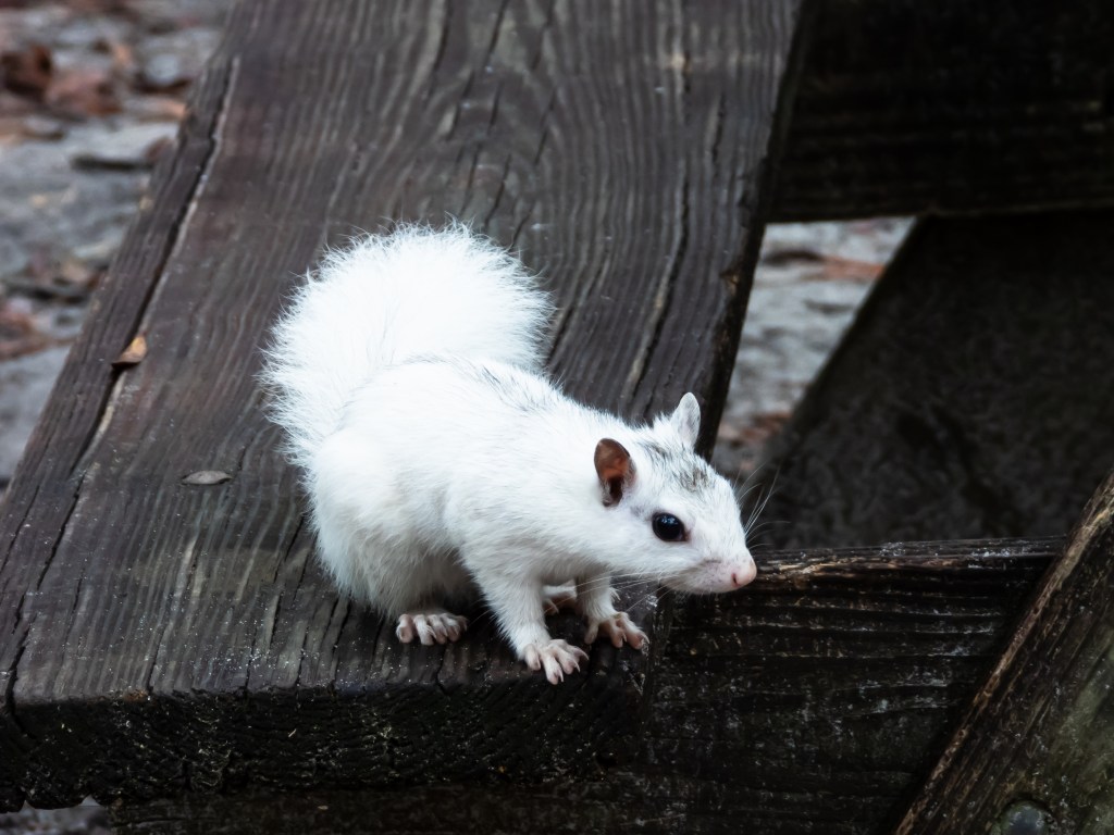 Now for the coolest thing about this park. The white squirrels! We only saw them in the campground, but I hear they frequent other areas of the park. These squirrels are not shy! They will try to steal not only your heart, but your food and anything else from your campsite that might interest them. They’ll hop right up on the table next to you! As cute as they are, please never feed them! They are wild animals, and feeding them makes them become nuisances and teaches them to not fear humans. Human food is also just not good for them. It may be tempting, but don’t give in to their cuteness! The little guy pictures below was determined to get into that juice. We took it away from him though. Sorry dude!