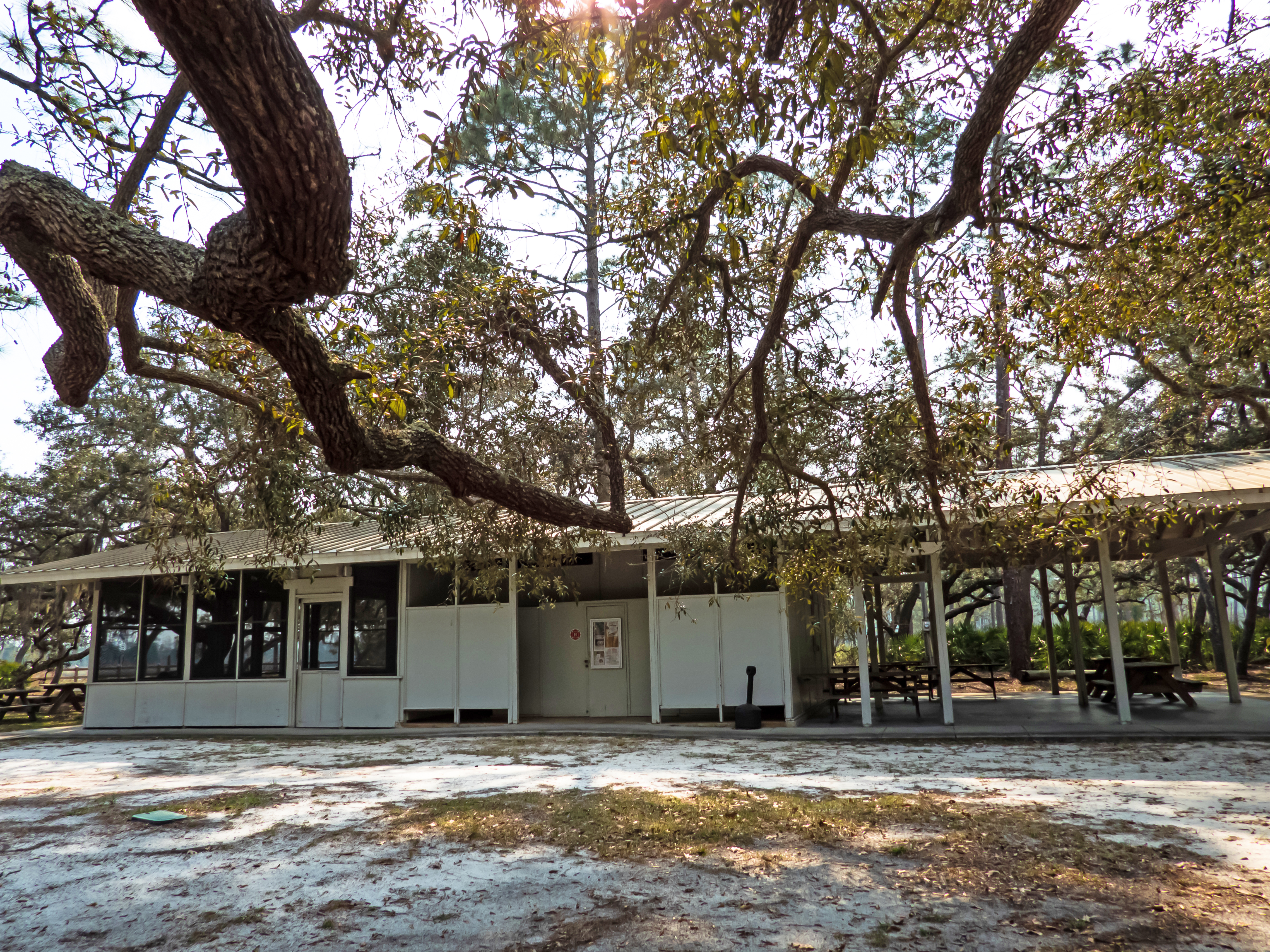 The day use area is a beautiful spot. Great for birding! There were many little warblers in the oaks surrounding the picnic area. There are picnic tables nestled randomly among the trees and along the river. The restroom could use a little love, but it’s functional and as clean as such an old bathroom can be. There’s a swimming area, but this is Florida, and it’s freshwater. Swim at your own risk if you like alligators.