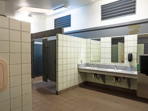 The road through the campground. Lots of trees and semi-private sites.I know bathroom photos aren’t exciting, but it’s good information to have when looking for a campground. The facilities here are a little older, but they’re perfectly functional and as clean as you would expect.