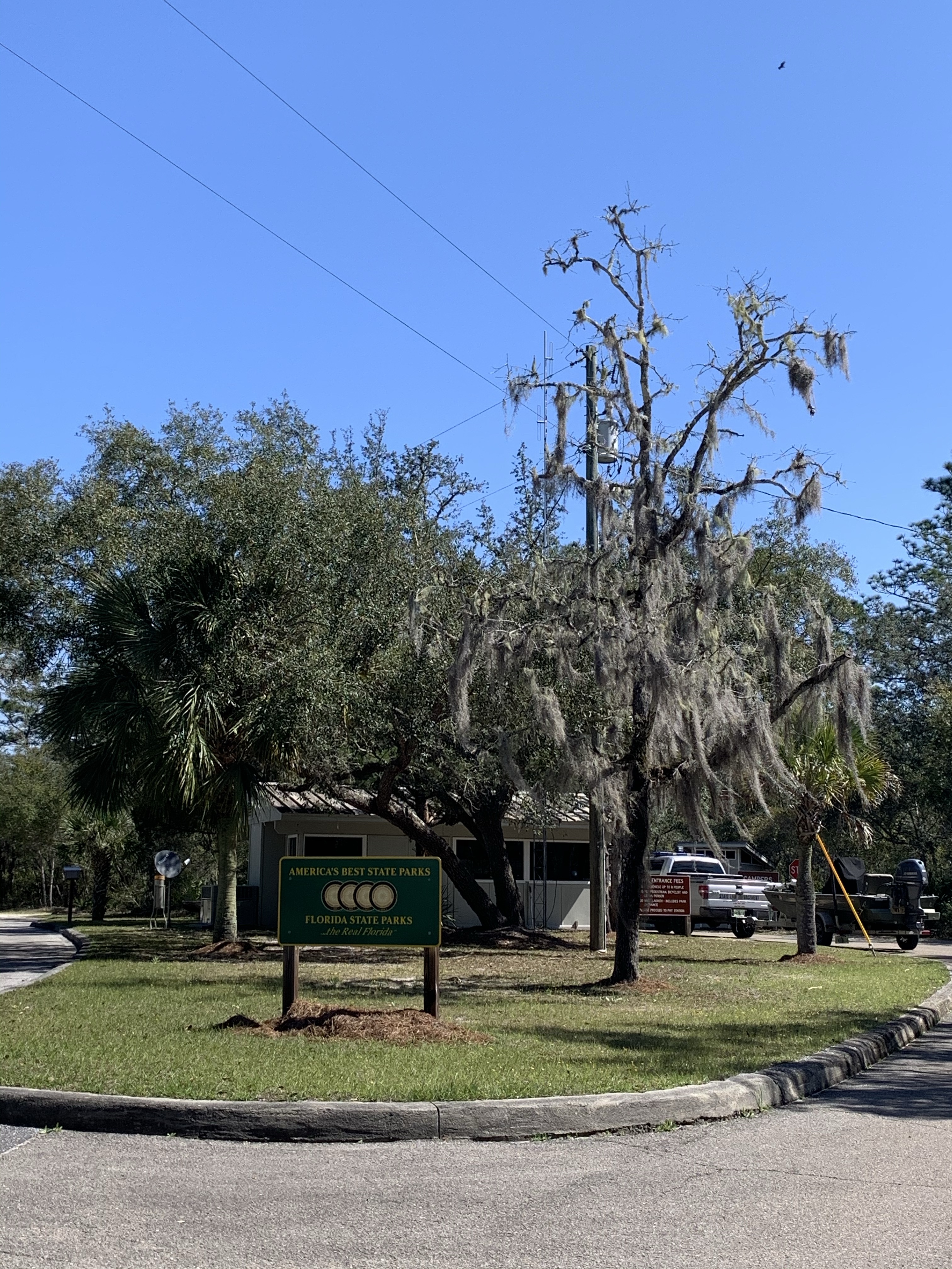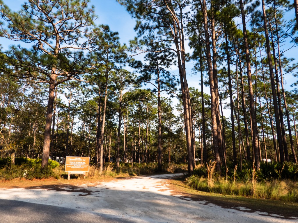 Welcome to Ochlockonee! Driving down route 319 near the tiny town of Sopchoppy, you’ll end up here at the park. If you’re planning to camp here for awhile, it may be helpful to know that the nearest Walmart is about forty minutes away in Crawfordville. The nearest store is a Dollar General, about fifteen minutes away. There really is nothing around here!