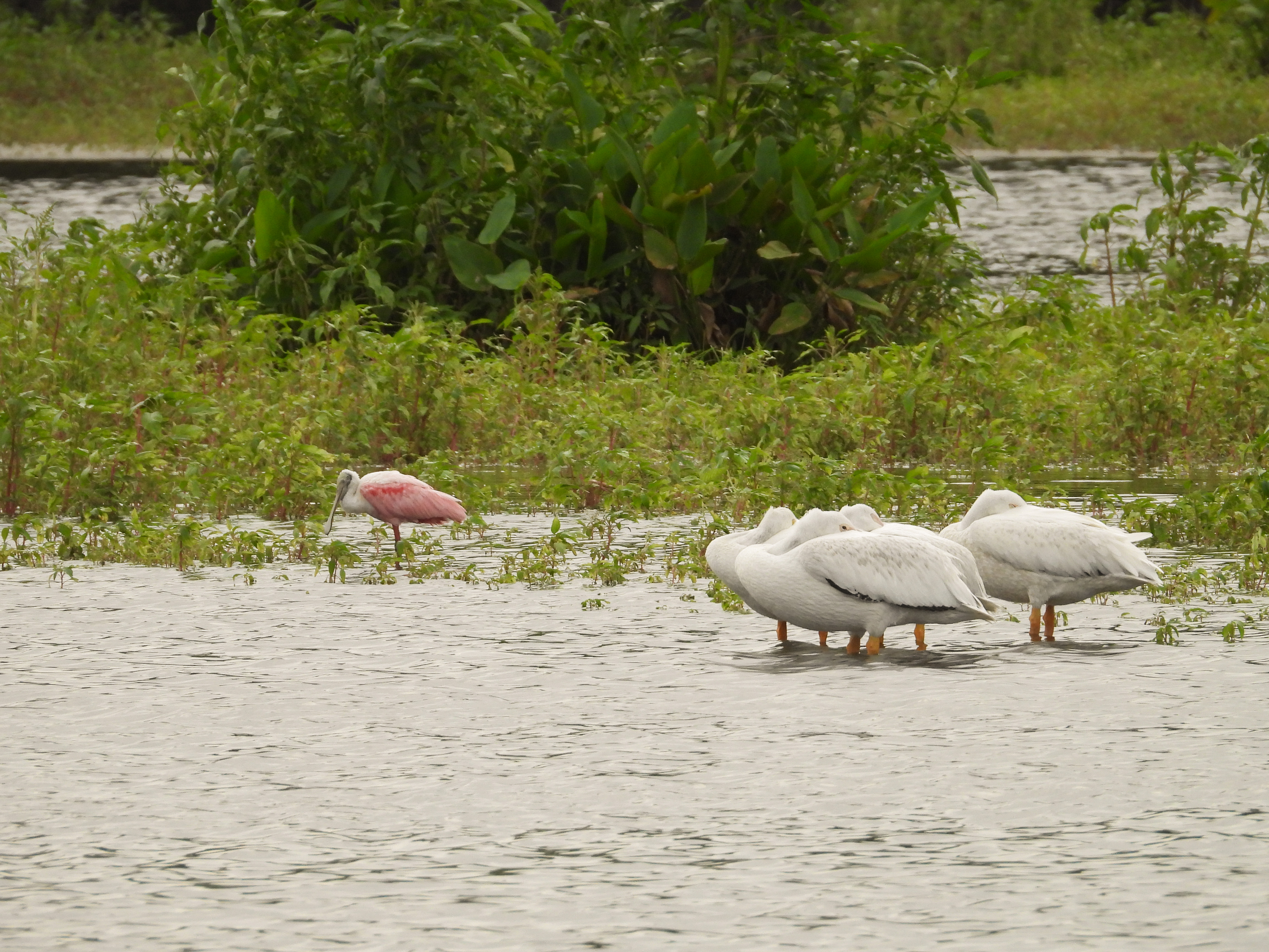 When everything was shut down for a Covid-19, I decided it was a good time to check out some local birding hot spots. Ollie’s Pond is one of those places I put off going to because I didn’t think it would be all that exciting. It’s just a big pond in the middle of a neighborhood. My expectations were pretty low. I was pleasantly surprised! The first time I went, I saw seventeen species of birds. Not a huge number, but it was a fun variety. Yesterday, there weren’t quite as many birds, but the few I did see were pretty exciting. There were black-necked stilts, white pelicans, and a roseate spoonbill, along with the usual suspects like red-winged blackbirds and osprey.