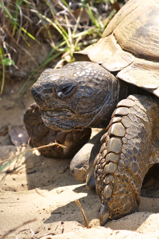 Another way to tell the difference is by checking out what they eat. Tortoises are herbivores, whereas turtles are omnivores. Now that that’s out of the way, let’s talk about why gopher tortoises are so awesome! They’re considered a keystone species. That means that their existence helps other life exist. Their amazing burrows can be up to forty feet long and ten feet deep. There up to 350 other species that will benefit from a gopher tortoise burrow. Some of the critters that will share their burrows are indigo snakes, pine snakes, burrowing owls, skunks, rabbits, armadillos, quail, opossums, foxes, mice, and a whole lot of insects, frogs, and toads.