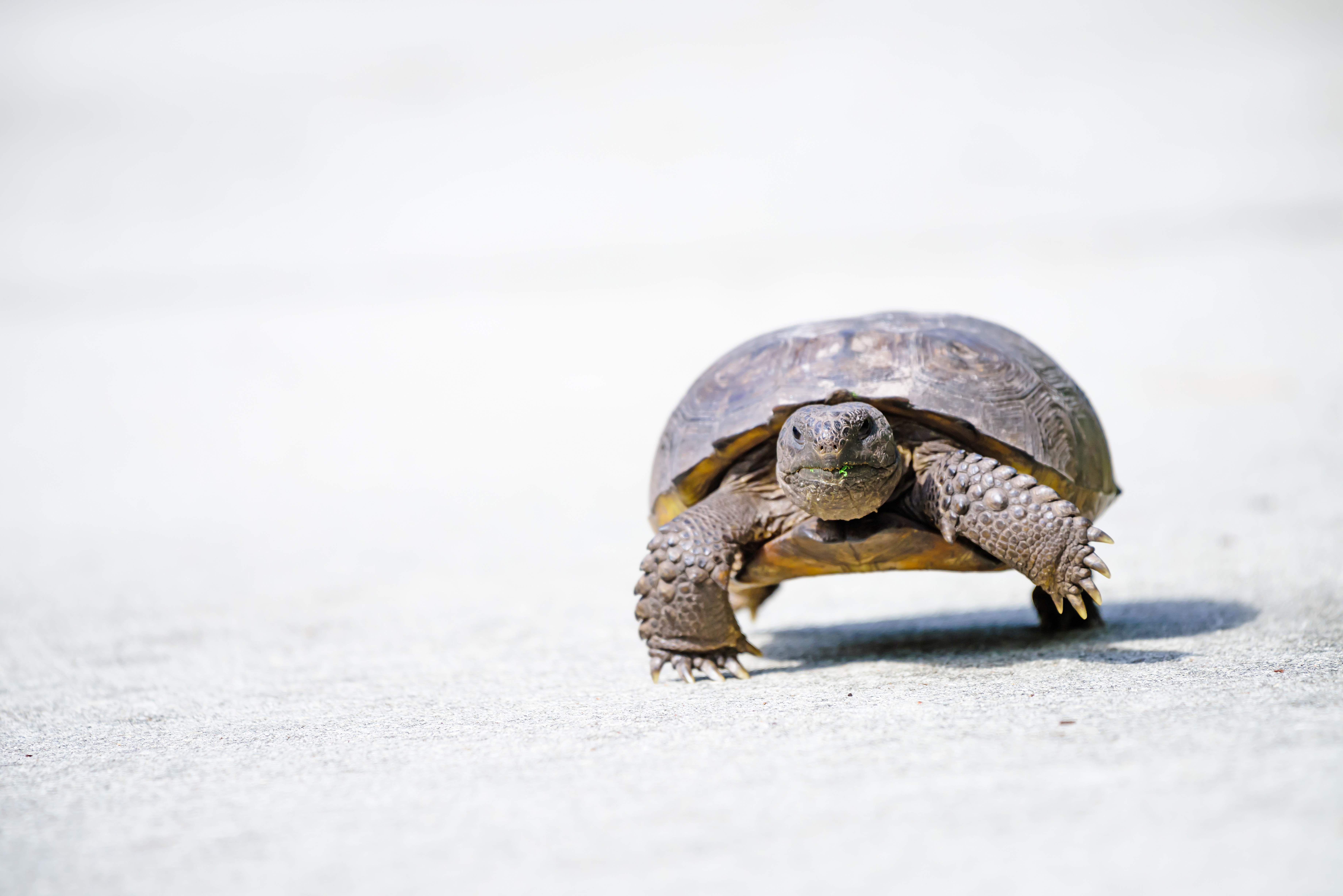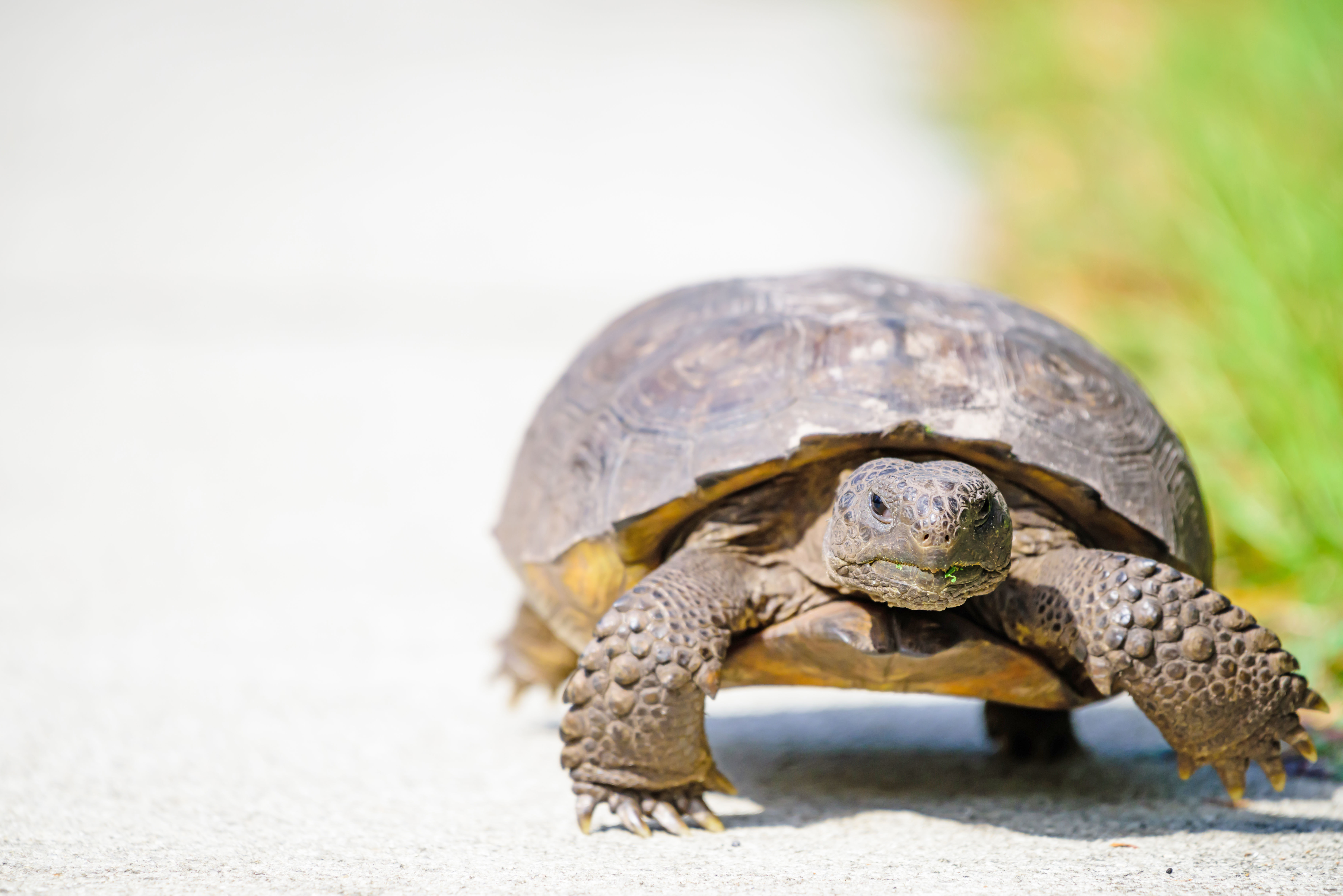 Gopher tortoises are a protected species. Like so many other animals, their main threat is habitat loss and fragmentation (where their habitat is broken up by roads and other obstacles). It’s illegal to handle these tortoises without proper permitting. The only time it’s okay and legal to touch one is when you’re moving them to safety off of a road. Always move them in the direction they were headed, otherwise they’ll walk right back into the road.