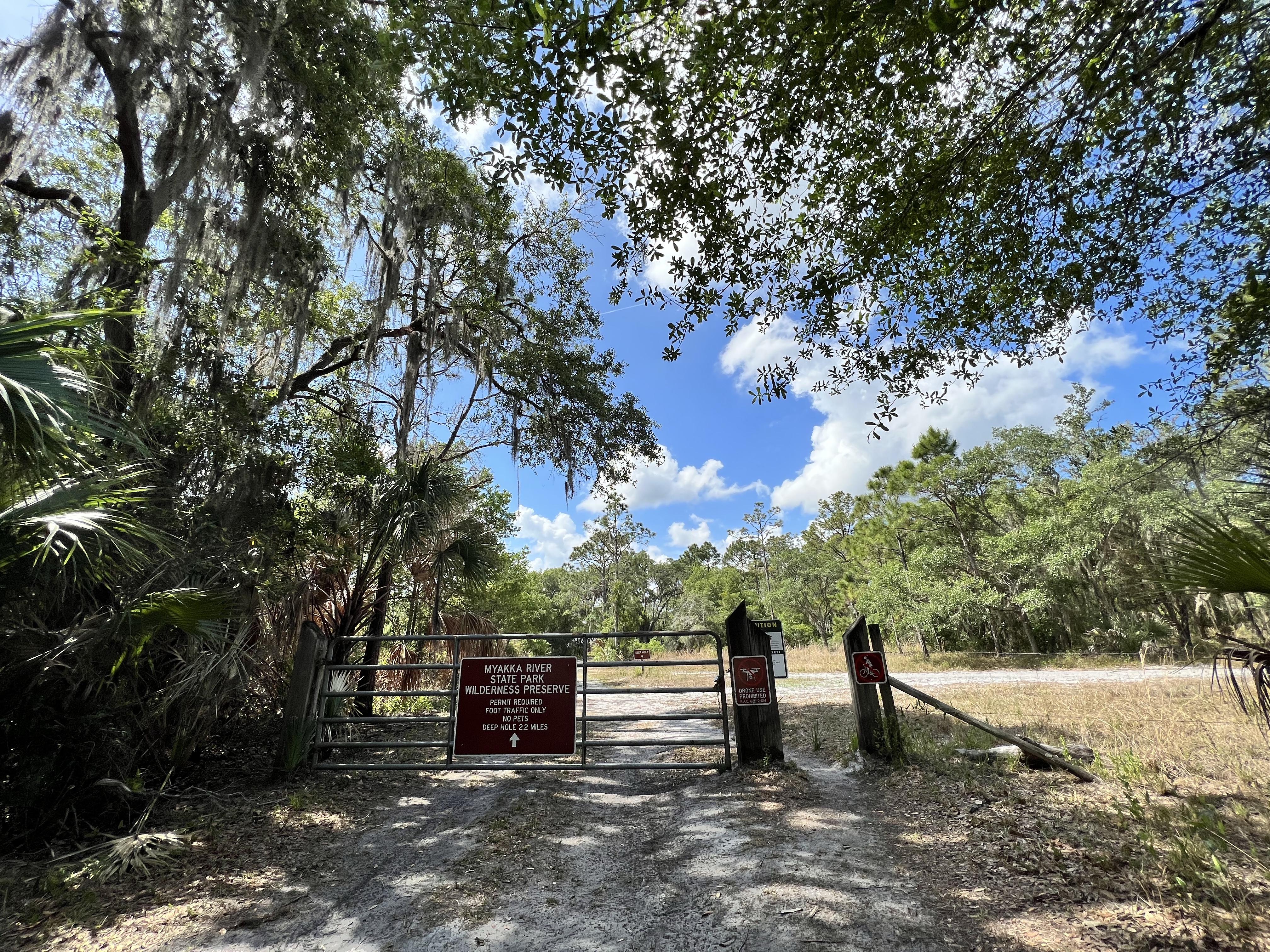 The walk is not particularly shady. In other words, you’re going to be very hot! The trail runs through sugar sand, so it’s a bit challenging. It is a beautiful hike through dry prairie with little islands of hardwood hammock.