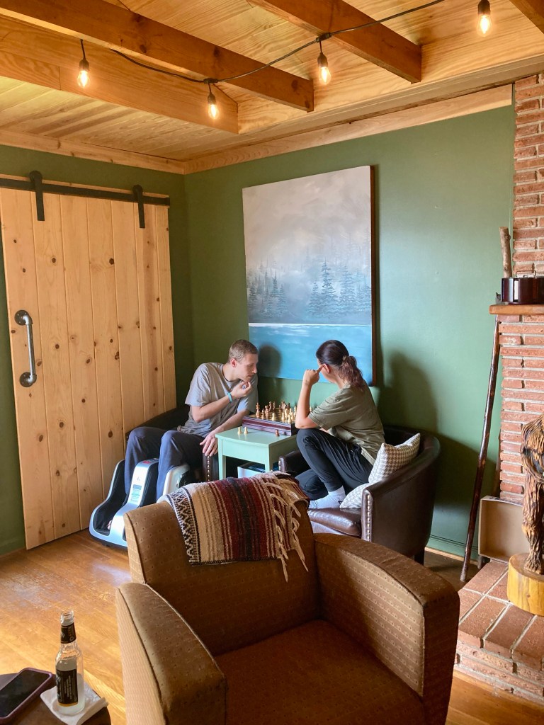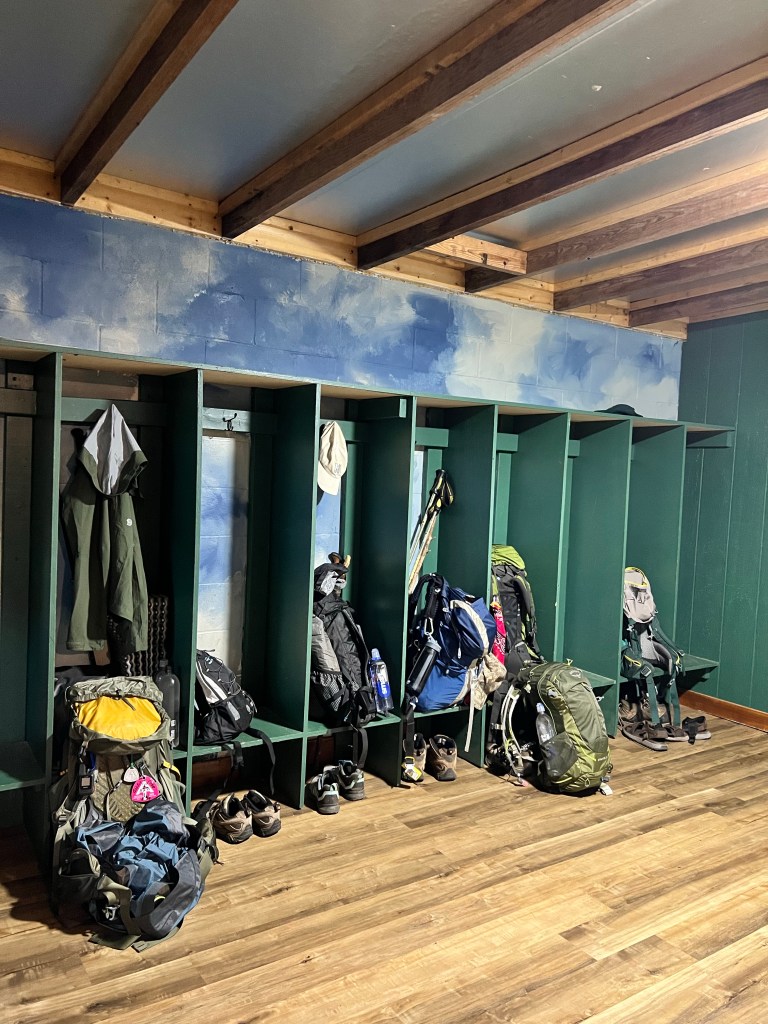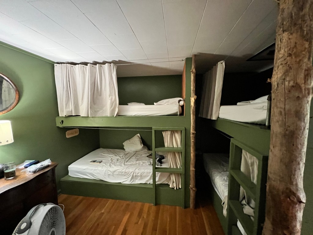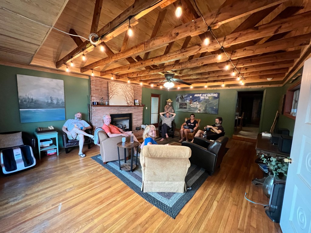 The hostel has bunks, a private room, or two little cabins you can sleep in. There are three shared bathrooms, and a nice common area. There’s also a pantry where you can purchase beverages and snacks, including pizza and ice cream. We stayed here our first night in town, and our last night, when Nimrod picked us up from where we ended our hike, at Woody Gap. You can find more info about this hostel on the Above the Clouds website.
