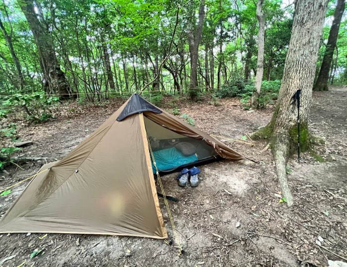 My tiny home for the night is comfy and cozy. When you’re on the trail, they call 9:00pm “hiker midnight.” I was ready for bed around 8pm every night, and by then most of the other hikers were in their tents fast asleep. During the thru-hiking season, there’s a thing called the bubble. This is a big group of hikers who all started their hike around the same time. Most people start their hike at Springer Mountain and head north to Katahdin in Maine. These are called NOBO hikers or north bounders. Those who hike from Katahdin to Springer are SOBO (south bound). Katahdin closes in late October, so it’s a race to get there before then. The majority of hikers start around the first day of spring. So, the bubble consists of this large group of people. We went quite a while after they had passed through, so it was not crowded at all. But we did have the pleasure of meeting several section hikers who were doing a LASH (Long Ass Section Hike) and bunch who were doing shorter sections. We met one thru-hiker who was doing what’s called a Flip Flop. Meaning he’ll hike north to the halfway point, then go up to Maine and hike south back to that halfway point, thus covering the entire trail in one go.