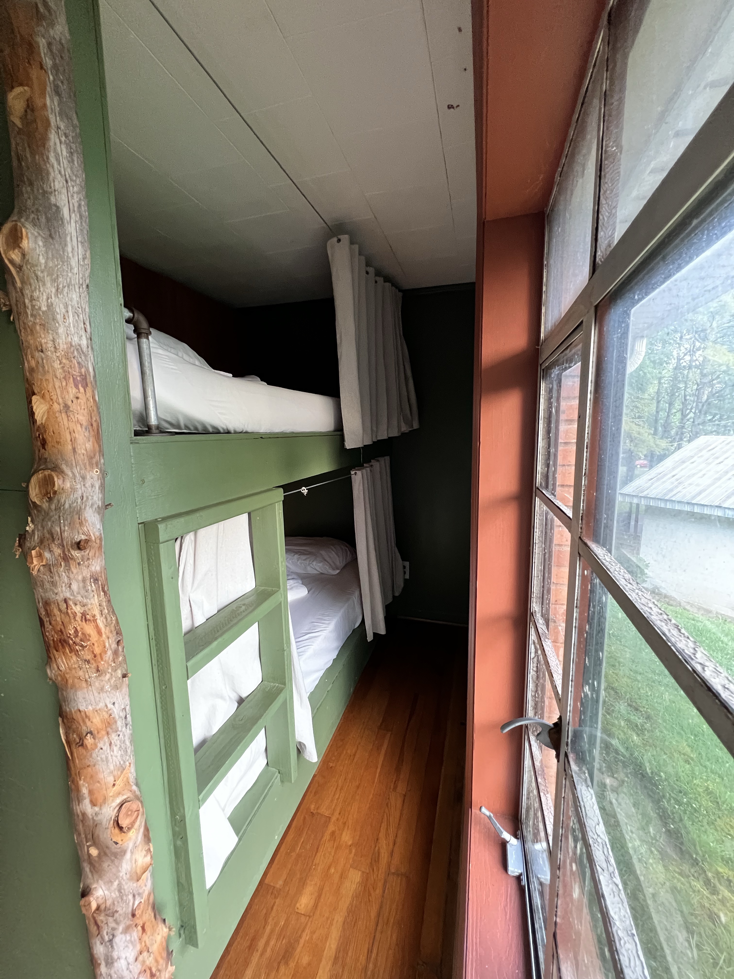 The hostel has bunks, a private room, or two little cabins you can sleep in. There are three shared bathrooms, and a nice common area. There’s also a pantry where you can purchase beverages and snacks, including pizza and ice cream. We stayed here our first night in town, and our last night, when Nimrod picked us up from where we ended our hike, at Woody Gap. You can find more info about this hostel on the Above the Clouds website.