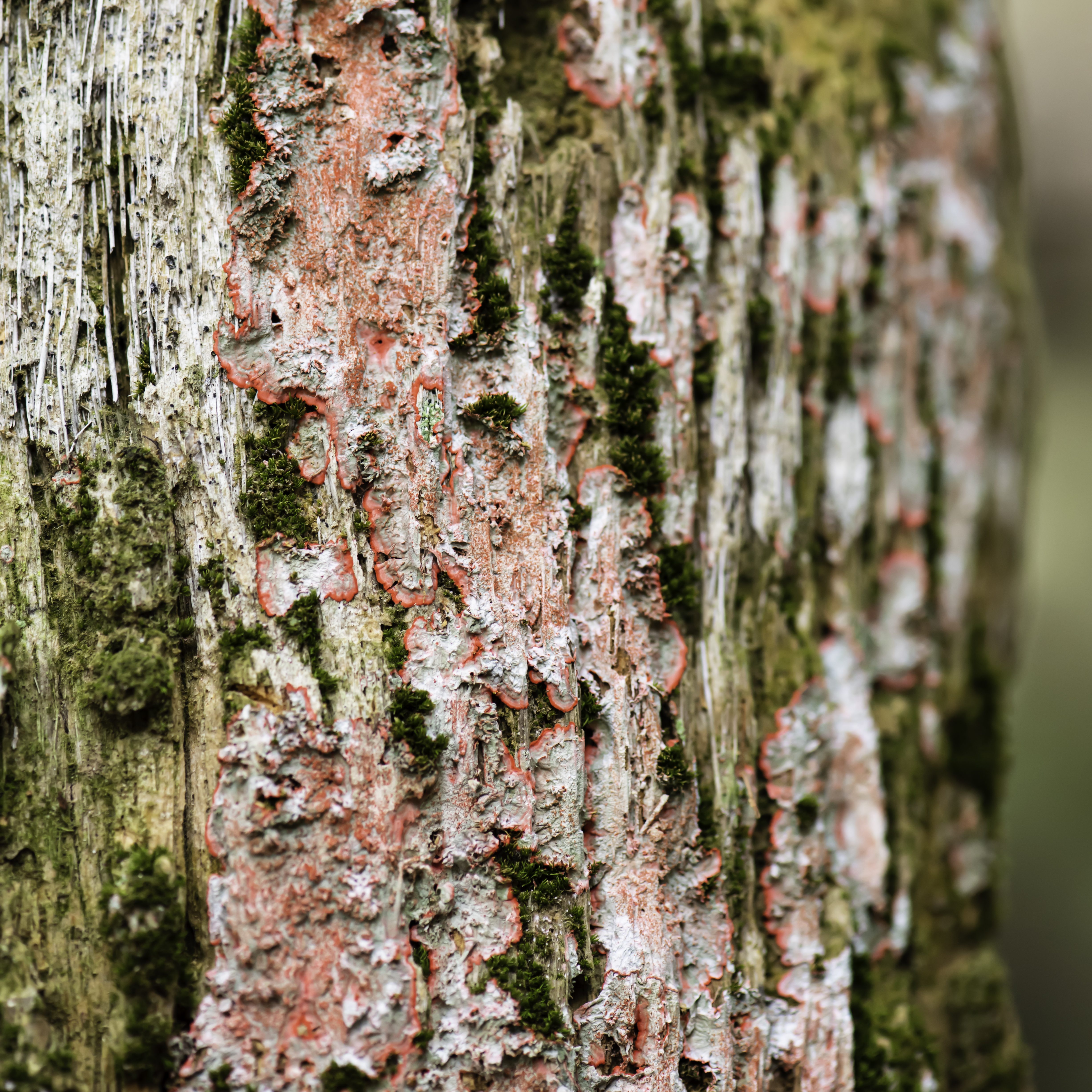 Let’s talk about lichen. You know the splotches of color you see on trees, sometimes white, sometimes green, sometimes a beautiful dark pink color – that’s lichen. Lichen is not a plant. It’s an organism that’s made up of fungi and algae. They don’t have roots, stems, or leaves. The algae part of the lichen provides nutrients through photosynthesis. The fungi attaches to the tree and hold the lichen in place. Lichen are very important for humans because they absorb everything in the atmosphere, including pollution. They also convert carbon dioxide to oxygen. Algae, such as that in lichen, produces 70% of the world’s oxygen! We have about 3600 species of lichen in North America. Lichen like sunny, moist areas. They’re often found on trees that are older and in declining health. The lichen doesn’t harm the tree, the tree just happens to have bare areas where light can get through and the lichen can thrive. Lichen can be an indicator of air quality because it thrives where the air quality is good.