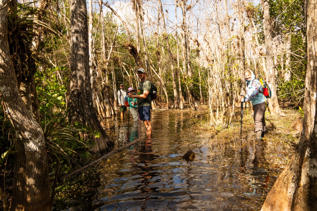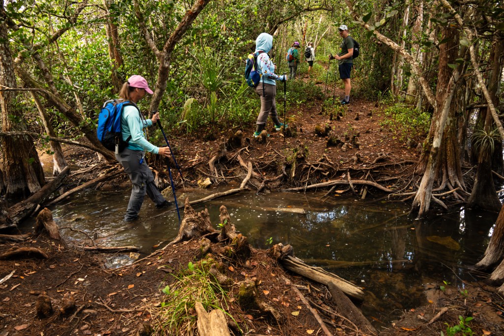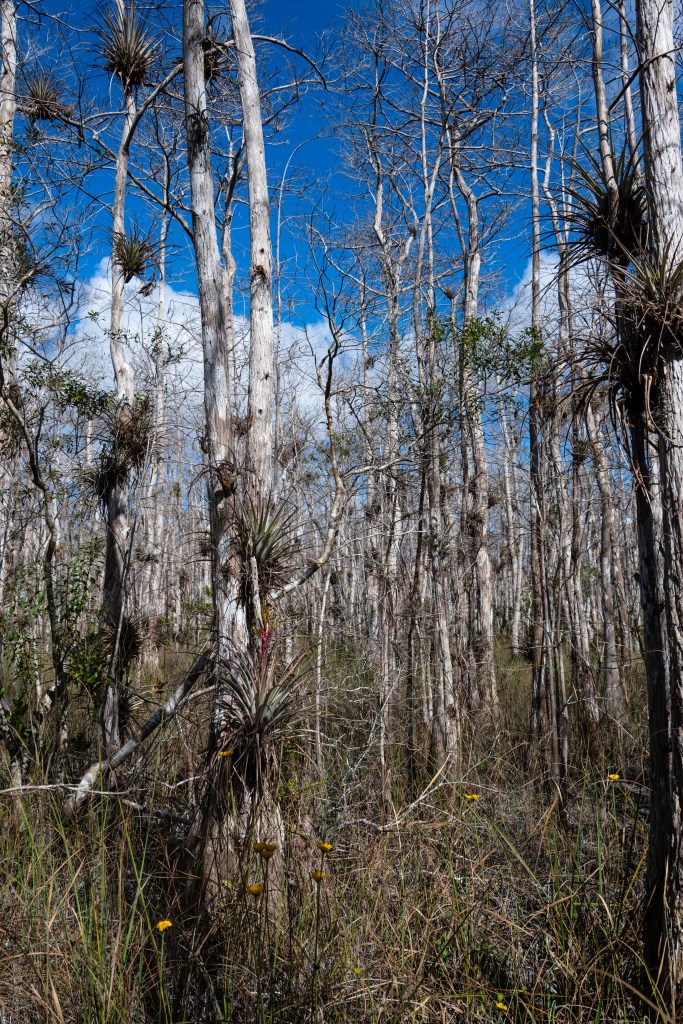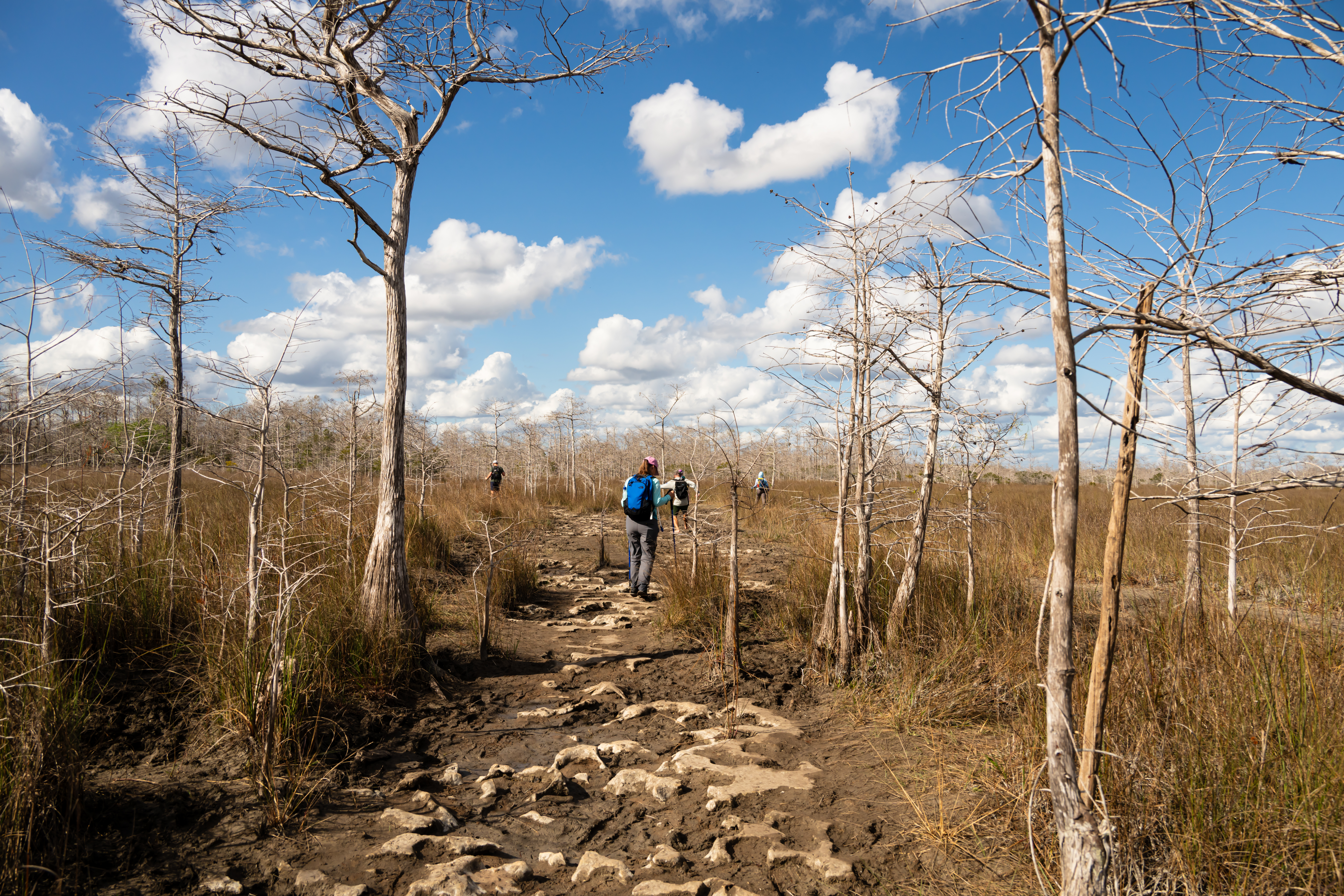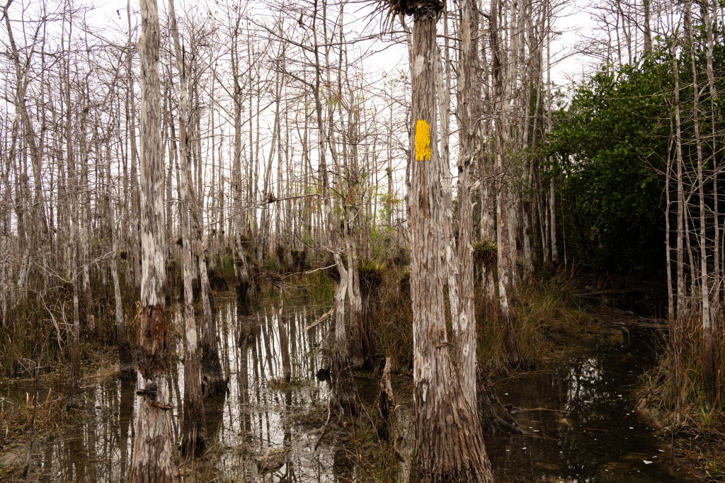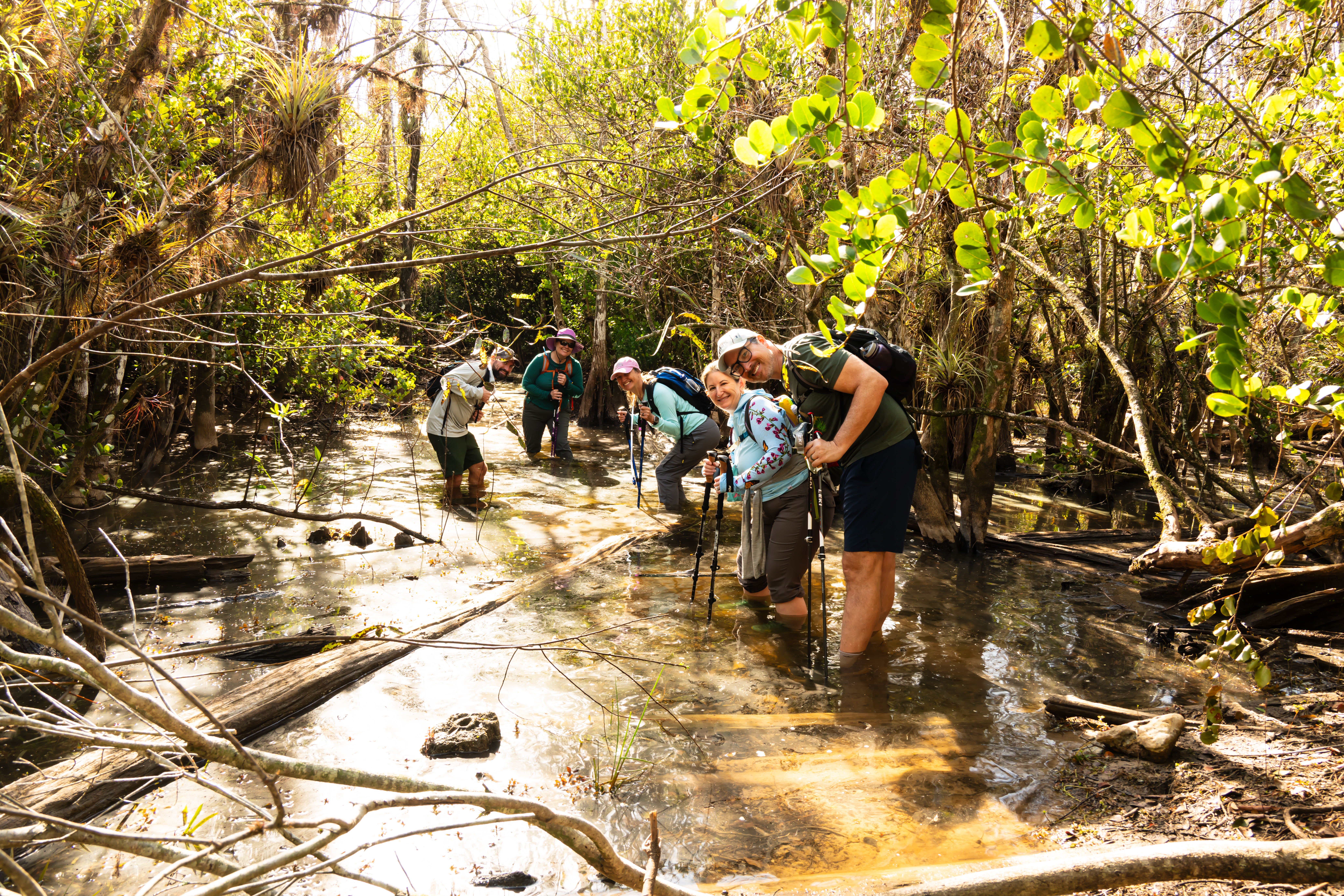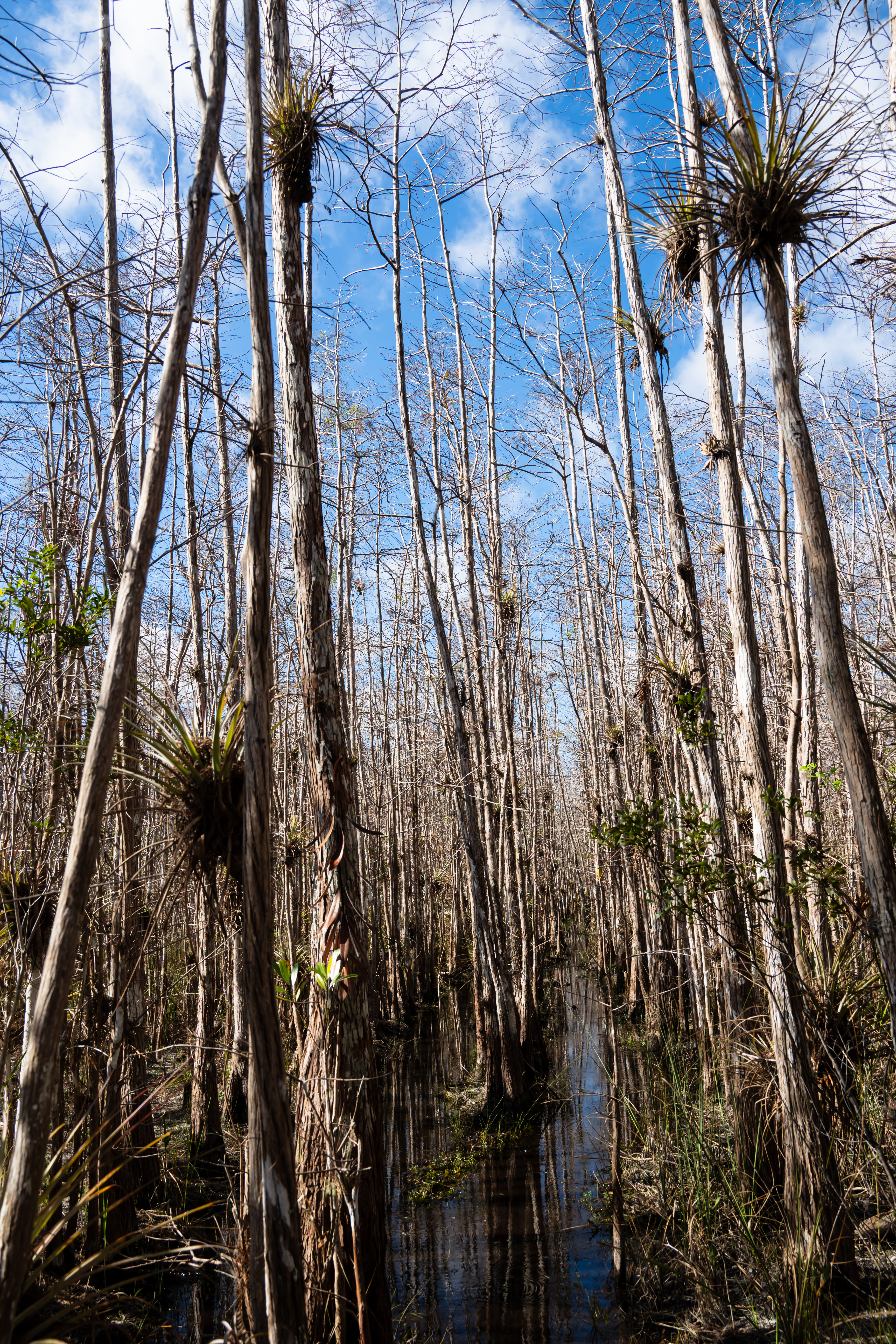 When you first set foot on the trail, it will seem like any other trail, but a couple of hundred feet further, and you enter a wild limestone landscape. This is a very diverse trail, where you’ll enjoy a trek through wet swamp and a dry mixed hardwood hammock full of ferns and cypress knees. Click on the photos below to enlarge and get a feel for the trail. These are all various points along the trail. Yes, even the water. We went during the dry season, but even so water was knee high in many places. I recommend trail runners and lightweight wool socks for this type of terrain. Waterproof shoes will just trap water inside and be miserable. If you do this hike, be sure you bring plenty of water and sun protection. That sun can be brutal when you pop out of the cypress island and into the cypress swamp where there is little shade.