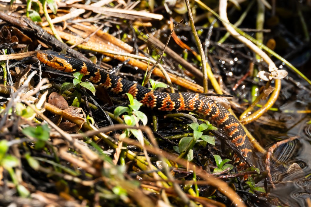 We didn’t see a whole lot of animals. Surprisingly, there were no alligators to be seen. We did see a couple of snakes though. You do have to watch out for the venomous Florida Cotton Mouth, also known as a water moccasin. The one we saw was about to shed, which was pretty cool! The little colorful guy here is a juvenile banded water snake, totally harmless and very cute!